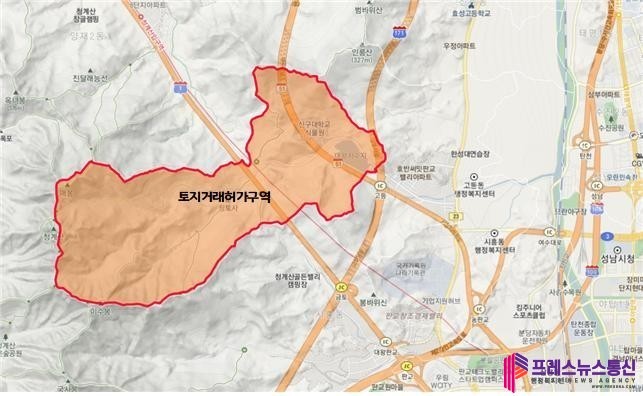 [프레스뉴스] 장현준 기자= 경기도가 부동산 투기세력 유입을 막기 위해 오는 11일부터 2023년 3월 10일까지 1년간 성남시 수정구 상적동 일원 임야 5.58㎢를 토지거래허가구역으로 재지정한다.