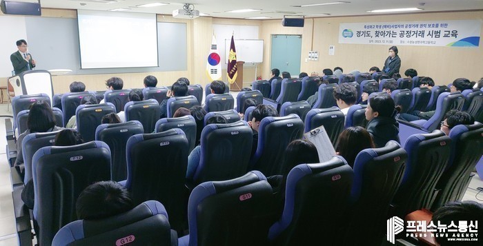 [프레스뉴스] 장현준 기자= 경기도는 지난 11일 수원농생명과학고등학교 3학년 전체 학생 약 120명을 대상으로 찾아가는 공정거래 교육을 실시했다.