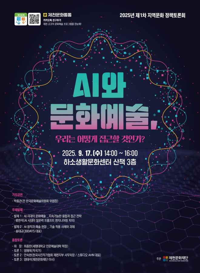 재단 관계자는 “인공지능 기술의 발전은 예술의 개념과 창작 방식을 근본적으로 바꾸고 있다”며, “이번 포럼을 통해 지역 예술가와 전문가, 시민이 함께 미래 전략을 모색하는 자리가 되길 바란다”고 말했다.