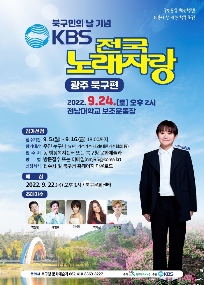 7일 북구에 따르면 ‘KBS 전국노래자랑 광주 북구편’이 오는 24일 오후 2시부터 전남대학교 보조운동장에서 열린다.