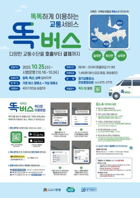 엄기만 경기도 광역교통정책과장은 “안성 똑버스 운행을 통해 지역 주민들이 더 나은 교통서비스를 제공받을 수 있기를 바란다”라며 “열악한 교통인프라로 많은 불편을 겪고 있는 도민을 위해 맞춤형 교통서비스인 똑버스 운행을 지속적으로 확대할 계획이다”라고 말했다.