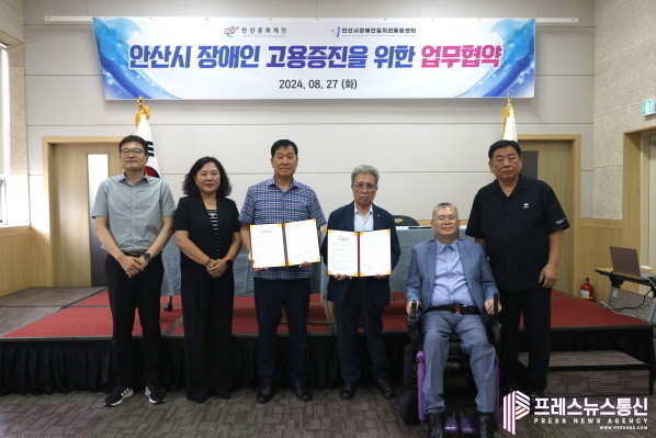 [프레스뉴스] 장현준 기자= 안산시(시장 이민근)는 지난 27일 안산시장애인일자리센터에서 안산시장애인일자리통합센터와 안산문화재단이 장애인 일자리 고용증진을 위한 업무협약(MOU)을 체결했다고 28일 밝혔다.