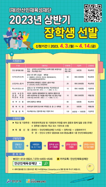 | ▲ (재)안산인재육성재단, 2023 상반기 장학생 선발 홍보 포스터(사진=안산시) |