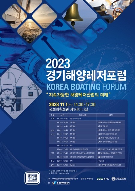 [프레스뉴스] 장현준 기자= 해양레저산업의 지속성장을 위한 정책 방향을 전문가들과 모색해보는 ‘2023 경기해양레저포럼’이 오는 11월 1일 오후 2시 30분 국회의원회관에서 열린다.