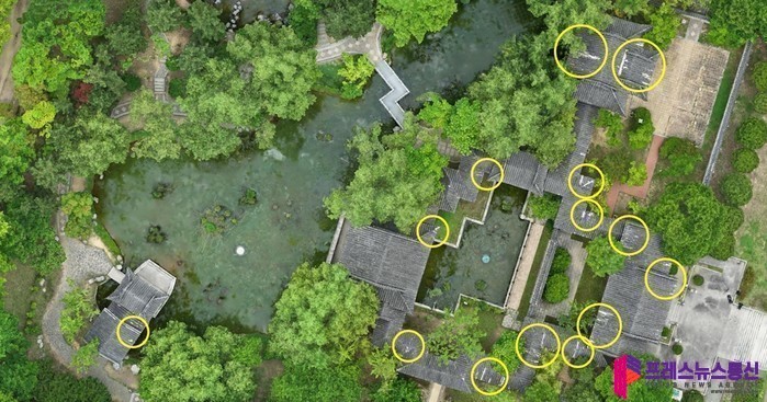 이밖에 수원시 효원공원 내 월화원 지붕기와를 드론을 활용해 점검한 결과 다수의 기와에서 파손이 진행된 것을 확인하고 낙하물 방지 안전조치 후 지붕기와 보수를 요청했다.