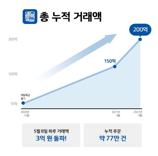 | ▲ 배달특급 누적 매출액 200억 돌파 그래프 |