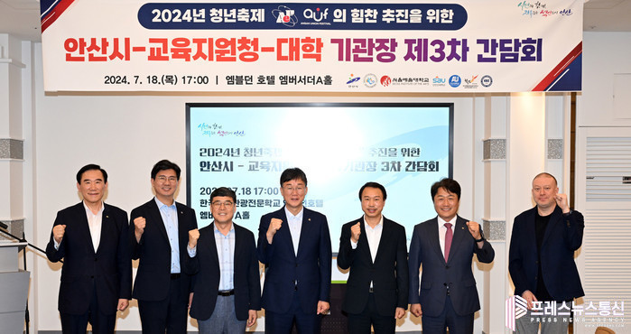 안산시(시장 이민근)는 지난 18일 엠블던호텔에서 안산교육지원청, 관내 5개 대학(▲서울예술대학교 ▲신안산대학교 ▲안산대학교 ▲한국호텔관광전문학교 ▲한양대학교 ERICA 캠퍼스)의 기관장들이 함께 모여 청년 축제 지원을 주제로 간담회를 개최했다고 19일 밝혔다.