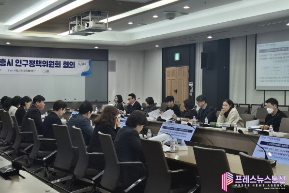 | ▲지난 14일 시청 글로벌센터에서 열린 2025년 제1회 시흥시 인구정책위원회 회의 모습(사진=시흥시) |