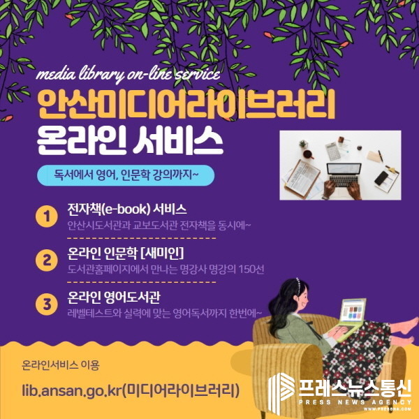 [프레스뉴스] 장현준 기자= 안산시(시장 윤화섭) 미디어라이브러리는 코로나19 확산으로 도서관 방문이 어려운 상황에 맞춰 다양한 온라인 서비스를 제공한다고 21일 밝혔다.