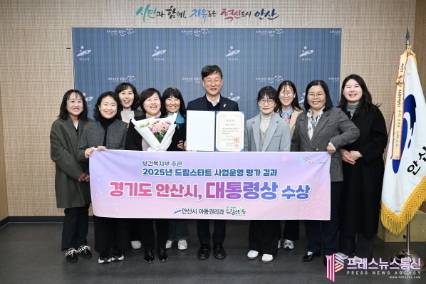 [프레스뉴스] 장현준 기자= 안산시(시장 이민근)는 안산시 드림스타트 사업이 올해 관련 정부 사업 운영평가 결과, 최우수 기관으로 선정돼 대통령상을 수상했다고 22일 밝혔다.