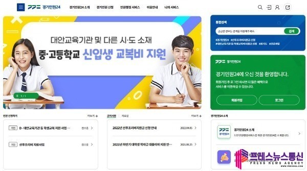 경기도가 도에서 제공하는 산후조리비지원금과 대안교육기관 등 학생교복지원금을 경기민원24 홈페이지를 통해 온라인으로 신청받는다.