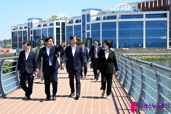| ▲회의 후 시흥 거북섬을 둘러보고 있다.(사진=안산시) |