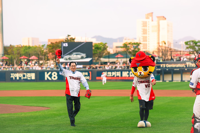 [전남=프레스뉴스] 박정호 기자= 신우철 완도군수가 4월 11일 광주 기아 챔피언스 필드에서 열린 기아 타이거즈와 LG 트윈스의 프로야구 경기 시구자로 나섰다.