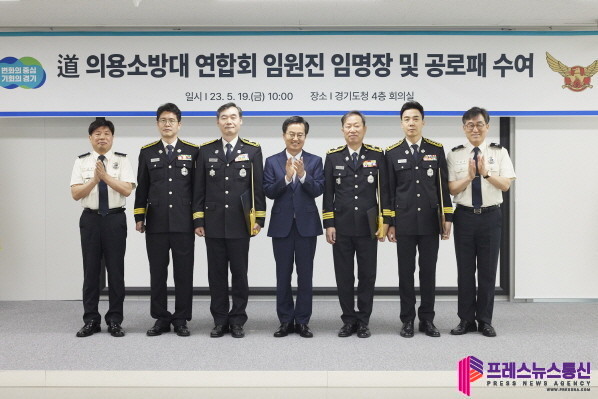| ▲ 19일 오전 경기도청 다목적회의실에서 김동연 경기도지사가 경기도 의용소방대 연합회 임원 임명장 및 공로패를 수여하고 기념촬영을 하고 있다.(사진=경기도) |