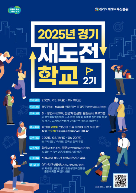 [프레스뉴스] 장현준 기자= 경기도와 경기도평생교육진흥원은 취업이나 창업 실패를 경험한 도민의 재기를 지원하기 위해 오는 6월 8일까지 ‘2025년 경기 재도전학교’ 제2기 참가자를 모집한다.