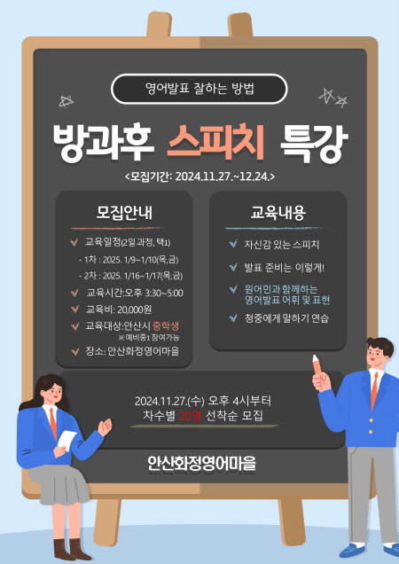 | ▲방과후 스피치 특강 수강생 모집 포스터(사진=안산시) |