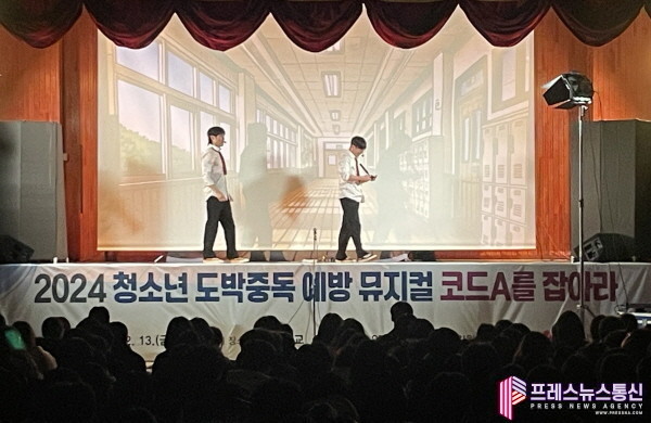 [프레스뉴스] 장현준 기자= 안산시(시장 이민근) 중독관리통합지원센터는 지난 13일 와동중학교에서 전교생 453명을 대상으로 청소년 도박중독 예방 뮤지컬 ‘코드A를 잡아라’를 상연했다고 16일 밝혔다.