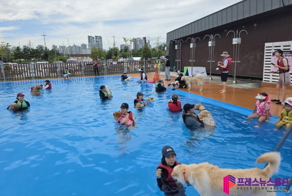 [프레스뉴스] 장현준 기자= 시흥시(시장 임병택)는 9월 6일부터 9월 7일까지 월곶 에코피아 수영장에서 반려동물 수영 문화교실(멍푸멍푸)을 운영했다.