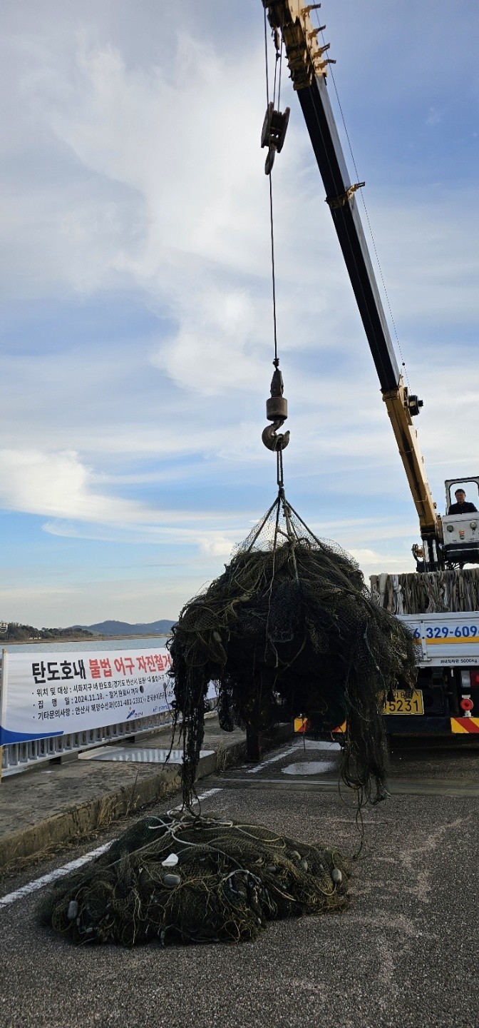 지난 10월부터 시는 경기도, 화성시와 함께 탄도호 불법 어업 합동단속을 실시해 탄도호에 무분별하게 설치된 불법 어구 사전 조사를 진행했다.