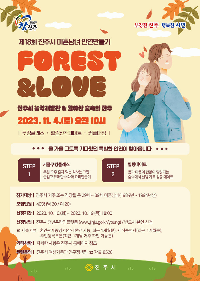 | ▲제18회 진주시 미혼남녀 인연 만들기 포스터(사진=진주시 제공) |
