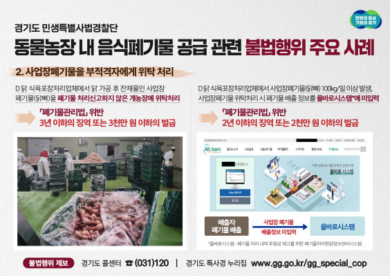 | ▲ 동물농장 내 음식폐기물 공급 관련 불법행위 주요 사례 그래픽(사진=경기도) |