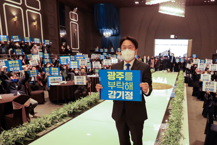 한편 강기정 예비후보는 지난 23일 광주상공회의소에서 출마기자회견을 열고 새로운 광주시대를 열기 위해 5개 신경제지구와 5개 신활력특구를 기반으로 ‘광주新경제지도’를 그려나가겠다고 밝혔다. 아울러 ‘이제는 됩니다–광주에 없는 20가지’ 공약을 통해 시민들의 삶을 보듬고 광주를‘삶의 모델 도시’로 바꿔나가겠다고 선언했다.