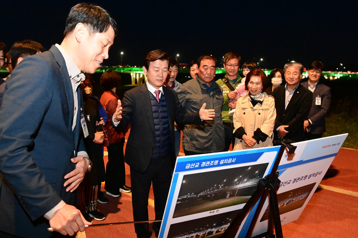 금산교 경관조명은 최근 접속부 차선확장 공사에 따라 변경된 교량 형태에 맞게 설치돼 교량 이용 시민과 인근 주민들에게 보다 아름답고 활기찬 도시 야경을 제공하게 됐다.
