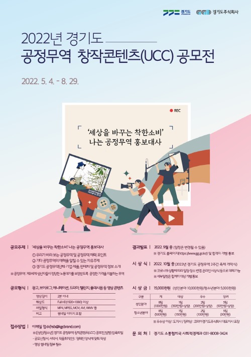 [프레스뉴스] 장현준 기자= 경기도가 공정무역 공감대를 확산하고 가치적 소비 동참을 유도하기 위해 5월 4일부터 8월 29일까지 ‘2022년 경기도 공정무역 창작콘텐츠(UCC) 공모전’을 개최한다.