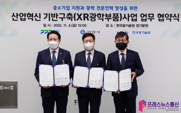 협약에 따라 한국광기술원은 ‘확장현실(XR)광학부품 거점센터’를 내년 초 설립·운영한다. 경기도와 안양시는 기술원과 유기적으로 협력하며 행·재정적 지원을 통해 도내 광융합 관련 중소기업의 기술적 지원 토대를 마련하고 확장현실·광학전문인력 양성과 스타기업 육성을 추진할 방침이다.
