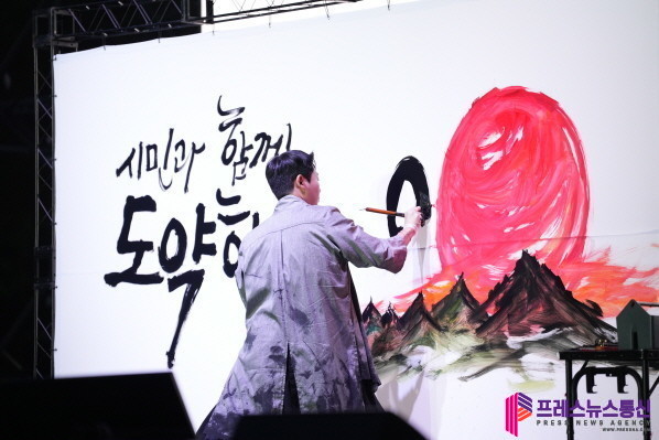 ▲2025 안양춤축제 개막식 캘리그래퍼 김무진 작가(사진=안양시) |