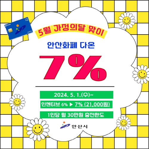 | ▲5월 가정의 달 맞아 안산화폐 다온, 인센티브 7%로 상향 홍보 이미지(사진=안산시) |