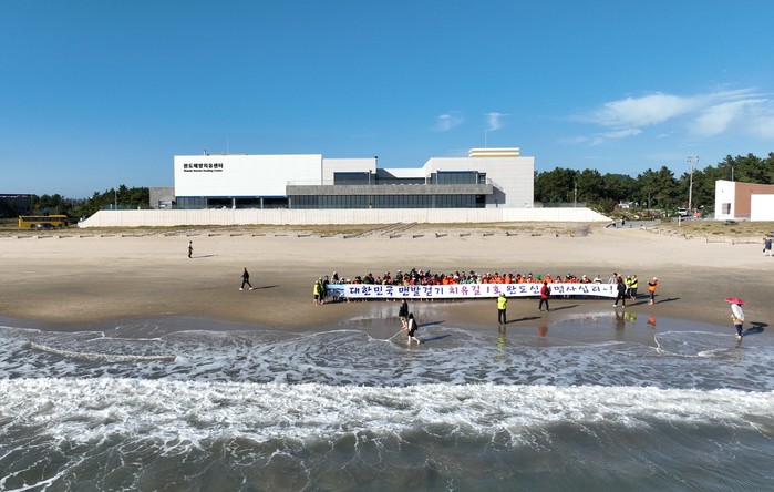 26일 진행된 신지 명사십리 치유길 맨발 걷기 페스티벌에는 400여 명이 참여해 황톳길과 부드러운 모래를 밟으며 활력을 충전하는 시간을 가졌다.