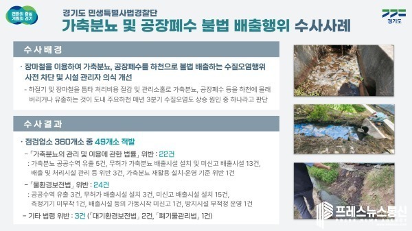 | ▲ 가축분뇨 및 공장폐수 불법 배출행위 수사사례(사진=경기도) |