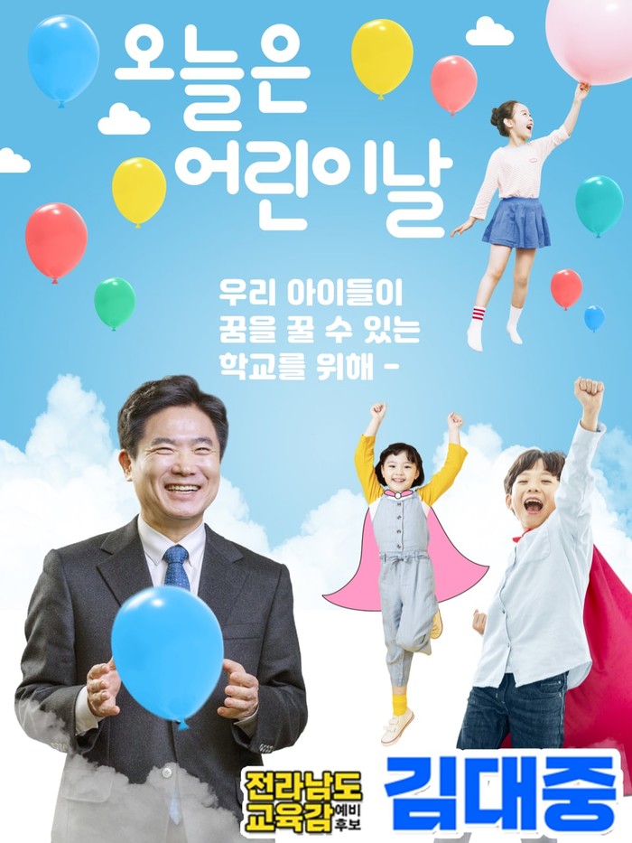 [전남=프레스뉴스] 강래성 기자= 김대중 전남도교육감 예비후보는 5일 어린이 날 100주년을 기념해 보도자료를 내고 “어린이들이 씩씩하고, 올바르고, 슬기롭게 자랄 수 있도록 학교 환경을 대전환하겠다”고 밝혔다.