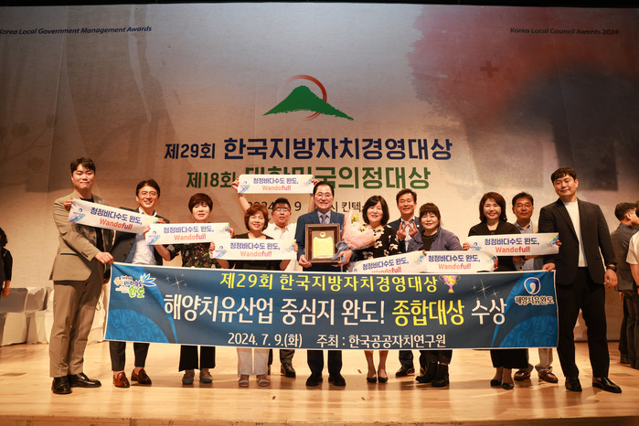 | ▲완도군이 지난 9일 한국공공자치연구원이 주관한 「제29회 한국지방자치경영대상」에서 ‘종합 대상’을 수상했다.(사진제공=완도군) |