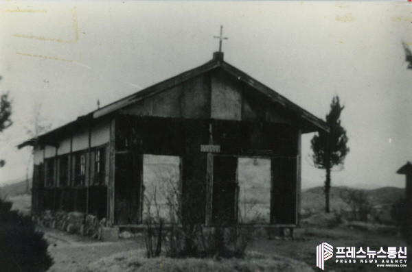 | ▲한국전쟁 이후 재건된 샘골강습소 전경 1960년대 모습(사진=안산시) |