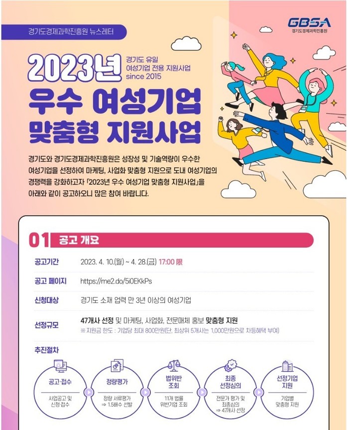 ▲ 2023년 우수 여성기업 맞춤형 지원사업 공고 포스터(사진=경기도경제과학진흥원) |