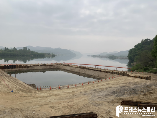 | ▲ 양수장 시트파일 설치 모습(사진=경기도) |
