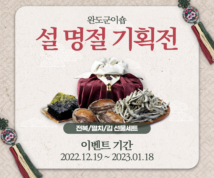 | ▲ ‘완도군이숍’ 설 명절 기획전 홍보 이미지(사진제공=완도군) |