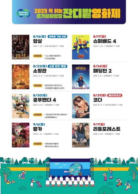 [프레스뉴스] 류현주 기자= 경기도가 16일부터 9월 7일까지 경기도청 북부청사 경기평화광장에서 매주 토요일·일요일 총 8회에 걸쳐 ‘2025 경기평화광장 잔디밭 영화제’를 연다.