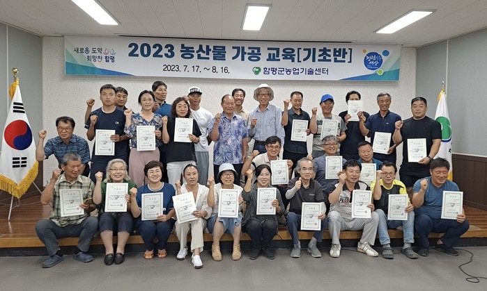 | ▲2023 농산물 가공교육 기초반 수료식(사진제공=함평군) |