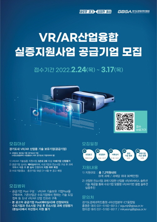 | ▲ VR/AR산업융합 실증지원사업 공급기업 모집 포스터(사진=경기도) |
