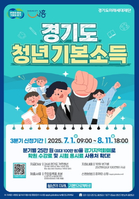 [프레스뉴스] 장현준 기자= 시흥시(시장 임병택)는 7월 1일부터 8월 11일까지 ‘2025년 3분기 청년기본소득’ 지급 신청을 받는다.