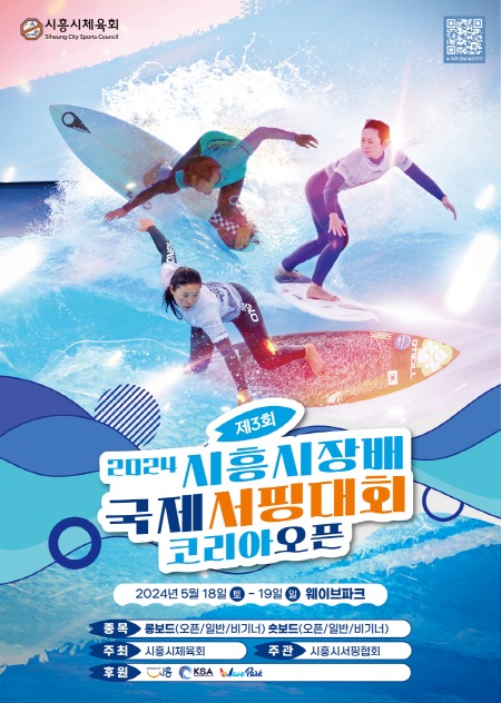 [프레스뉴스] 장현준 기자= 시흥시체육회가 주최하고, 시흥시서핑협회가 주관하는 ‘2024 제3회 시흥시장배 국제서핑대회 코리아오픈’이 거북섬 웨이브파크 인공서핑장에서 오는 5월 18일부터 19일까지 열린다.