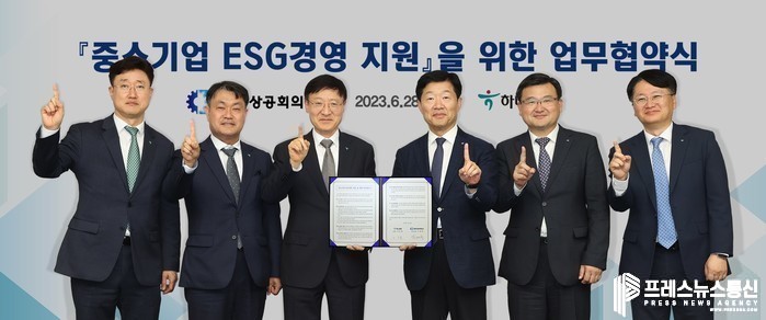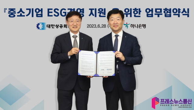 [프레스뉴스] 김대일 기자= 하나은행(은행장 이승열)은 지난 28일 서울 중구 소재 대한상공회의소 본사에서 대한상공회의소와 중소기업 ESG 경영지원을 위한 업무 협약을 체결했다고 밝혔다.