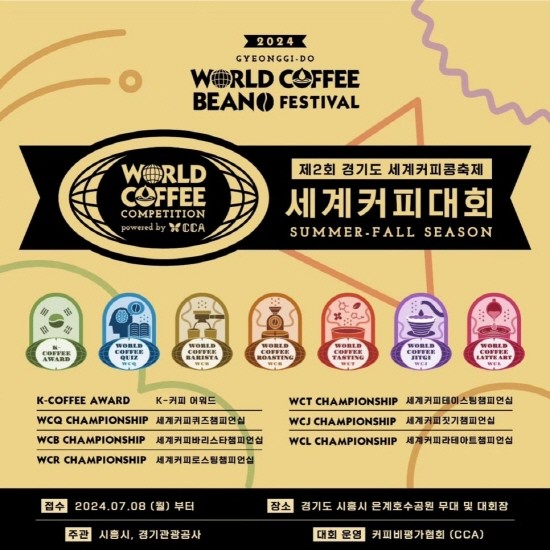 이번 대회는 지난해보다 더욱 풍성해졌으며, 바리스타와 라테아트 경연이 추가돼 총 7개 부문에서 진행된다. 예선전은 8월 26일부터 27일까지, 본선 대회는 9월 24일에 열린다. 대회에 참가하려면 조직위가 운영하는 ‘커피비평가협회’ 누리집을 통해 8월 4일까지 신청할 수 있다.