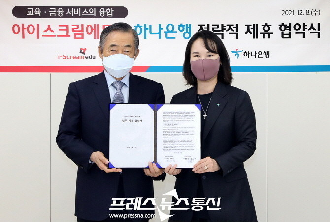 [프레스뉴스] 김대일 기자= 하나은행(은행장 박성호)은 초중등 스마트홈러닝 시장을 선도하는 에듀테크 기업 아이스크림에듀(대표이사 박기석)와 『Z세대 대상 금융-교육 혁신 융합서비스 제공』을 위한 업무협약을 체결했다고 밝혔다.