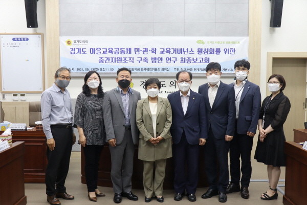 [프레스뉴스] 김대일 기자= 경기도의회 의원연구단체인 ‘학교·마을 연계강화를 위한 교육거버넌스 연구회(회장 전승희/더불어민주당, 비례)’는 13일 교육행정위원회 회의실에서 ‘경기도마을교육공동체 민·관·학 교육거버넌스 활성화를 위한 중간지원조직 구축방안 연구’에 대한 정책연구용역 최종보고회를 개최했다고 밝혔다.