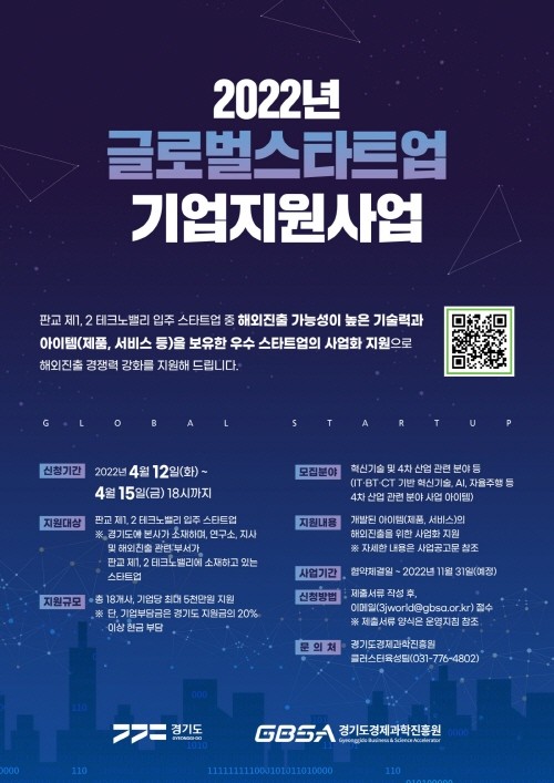 | ▲ 2022년 글로벌 스타트업 기업지원사업 포스터(사진=경기도) |