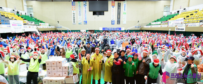 [프레스뉴스] 장현준 기자= 안산시가 폭설에도 불구, 지역 내 어렵고 소외된 이웃들의 따뜻한 겨울나기를 위해 온정의 손길을 한데 모았다. 안산시(시장 이민근)는 지난 27일 올림픽기념관에서 열린 ‘2024 김장나눔 통합행사’를 축제와 같은 분위기 속에서 성황리에 마쳤다고 28일 밝혔다.